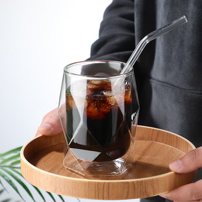 1. Изработен от висококачествено стъкло с триизмерен дизайн, идеален за пиене на мляко, кафе, сода, бира или уиски.